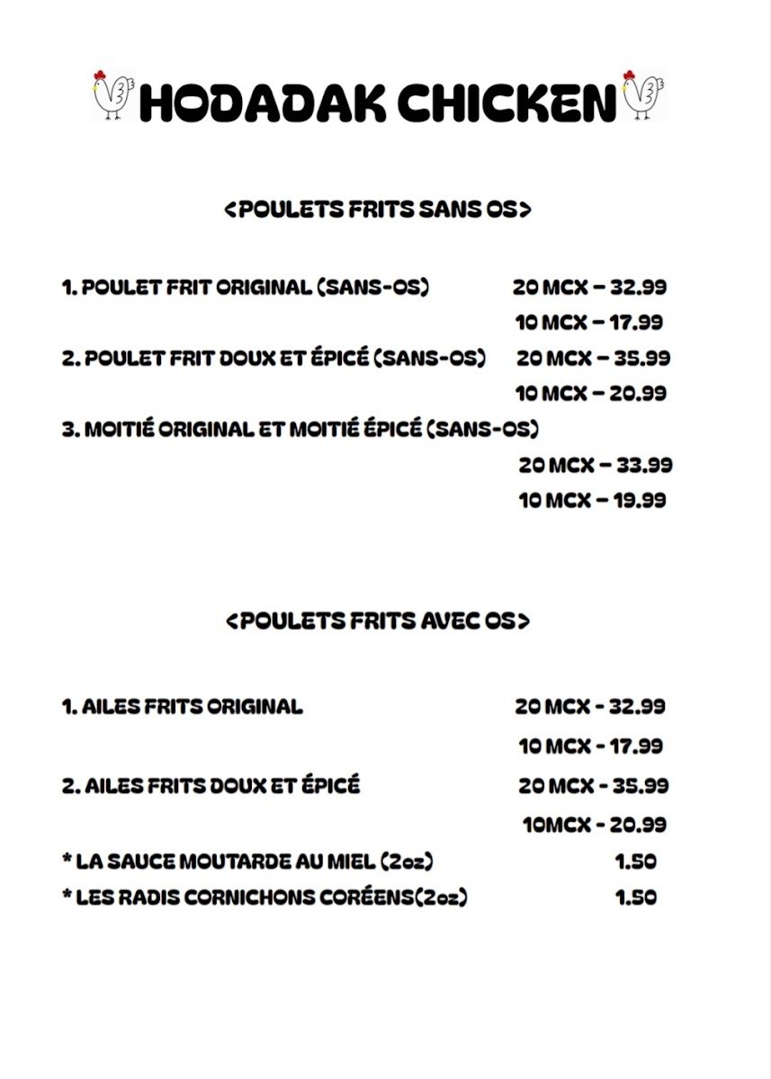 One of the highlights of Hodadak is their Poulet Frit sans Os, or Boneless Fried Chicken, which comes in a variety of flavors such as Original, Sweet and Spicy, and Garlic Soy Sauce. Each bite is crispy, juicy, and packed with savory goodness.